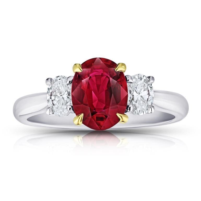 1.76 Carat Oval Red Ruby and Diamond Ring