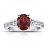Details2.00 carat oval red spinel with 14 trapezoid and carre diamonds .58 carats channel set in a platinum with 18k yellow gold ring "