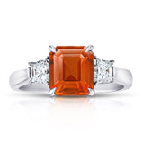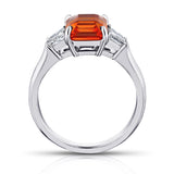 3.21 Carat Emerald Cut Orange Sapphire and Diamond Ring
