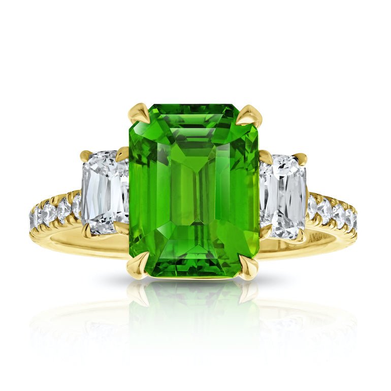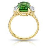 4.02 carat Emerald Cut Green Tsavorite and Diamond 18K YG Ring