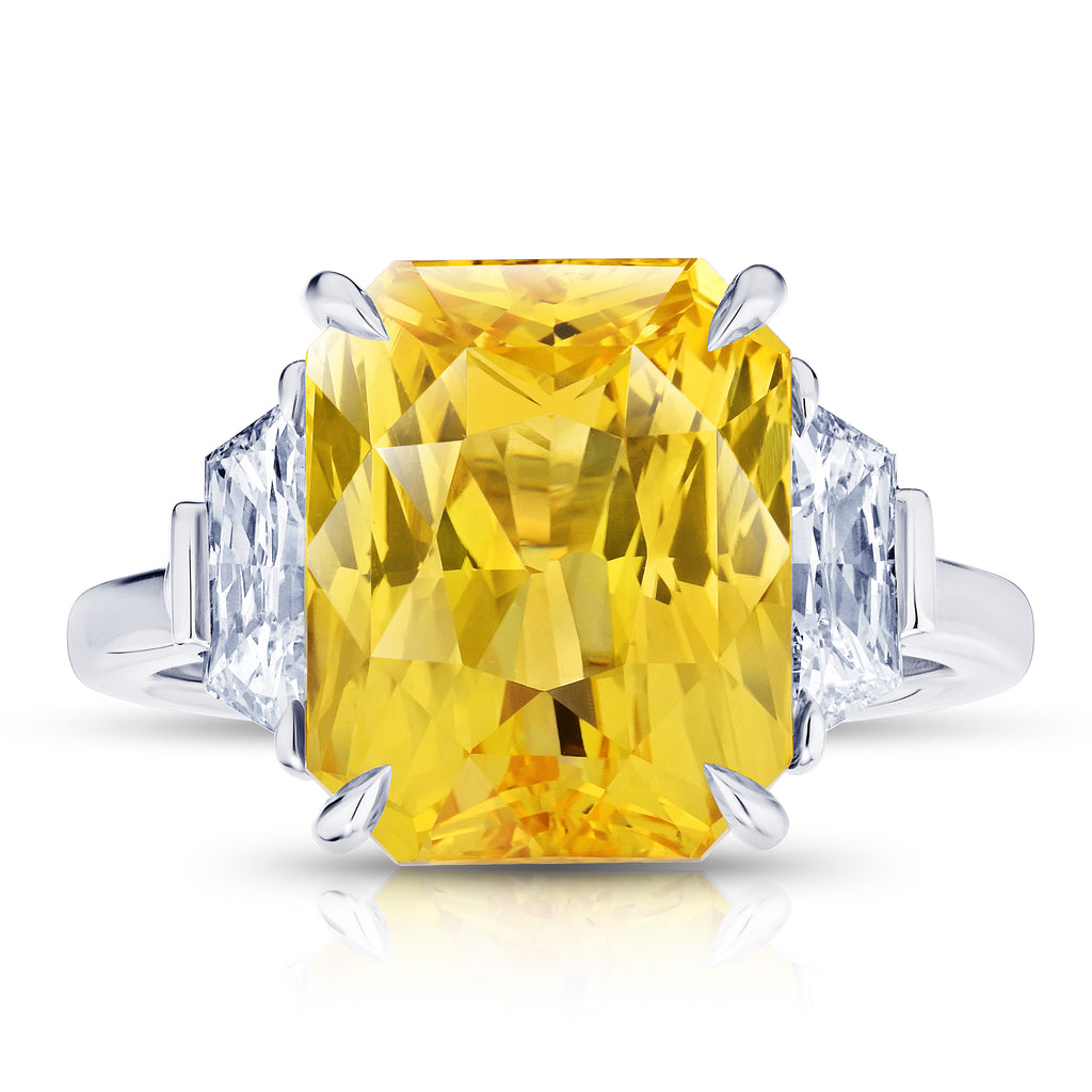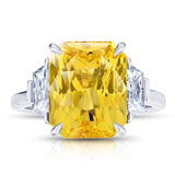 9.08 CT Radiant Yellow Sapphire with Trapezoid Diamonds 0.82 carats set in a Platinum Ring