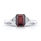 2.08 Carat Emerald Cut Reddish Brown Sapphire and Diamond Ring