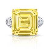 20.41 carat Asscher Yellow Sapphire and Diamond Platinum Ring