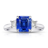 3.18 Carat Emerald Cut Blue Sapphire and Diamond Ring