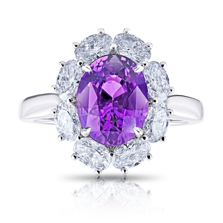 3.56 purple Oval Sapphire and Diamond Platinum Ring