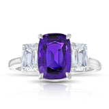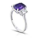 Details3.72 carat Cushion Purple Sapphire with two Cushion Diamonds .97 carats set in a handmade Platinum ring