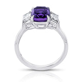 3.72 Carat Cushion Purple Sapphire and Diamond Platinum Ring