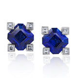 3.90 carat Asscher Blue Sapphire with eight Carre Diamonds 0.38 carats set in Platinum Earrings