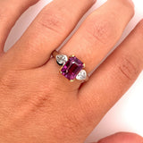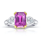 4.04 carat Emerald Cut pink sapphire with pear shape diamonds .54 carats set in a platinum with 18k yellow gold ring
