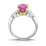4.04 Carat Emerald Cut Pink Sapphire and Diamond Ring