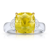 6.51 Carat Cushion Yellow Sapphire and Diamond Ring